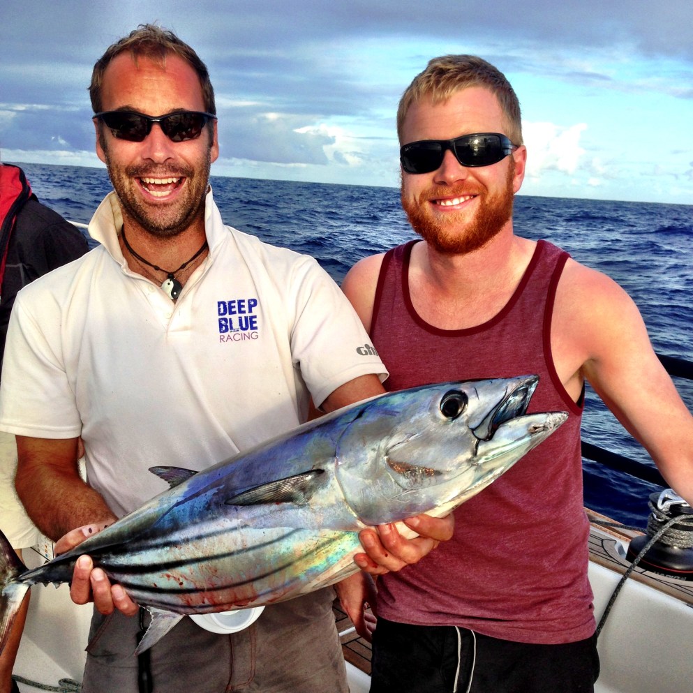 Another day of treats came last week when we hit the half way stage, which was also the last time I had a shave and a shower. It felt like Christmas Day and came with many of the emotions associated with it. First came the present, a 20lb tuna, which the crew could feast on for the rest of the day. The weather was glorious and morale high. However there were the sulks as miles were lost, tantrums as the squalls hit, niggles as tiredness set in and ultimately the much celebrated and long awaited lunch was over cooked! Luckily the left overs were not wasted and the tuna steak evening meal was divine. Finally the badly executed kite hoist under the darkness of a moonless night was my cue to go to bed, tired and pouting after a top day on the water.